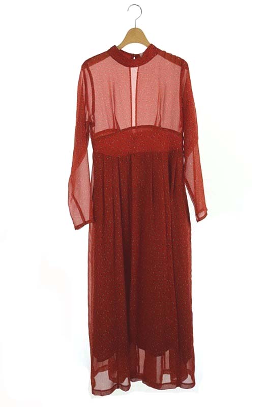 アピューピル A Pupil 総柄シフォンワンピース ロング 長袖 S 赤 Kn Os Sh レディース 170 ベクトルパーク
